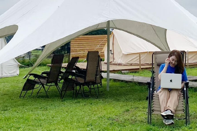 年間を通してテレワークを基本体制とする弊所では、不定期にワーケーションを推奨しています。守秘義務の観点から、所内雑務等の屋外で処理しても問題がないもので、かつ、森林等の第三者の目に触れることがないところで作業することとしています。キャンプブームと相まって、各自ソロキャンプを堪能しています。焚火を眺めながらの事務作業は捗ります。 また自然の中に身を置くことで、気分転換にもなり、ワーケーション最高です。